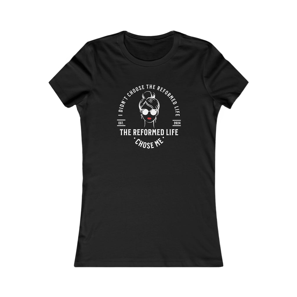The Reformed Life Chose Me - Women's Tee is a great choice for everyday wear. It's made from 100% Airlume combed and ring-spun cotton and has a light fabric that is perfect for hot summer days or layering under a sweater in the colder months. This tee has a comfortable feminine fit with a slim cut and a longer body length. The classic crewneck and short sleeves make it versatile and easy to style. Plus, it's made to feel like a well-loved favorite!